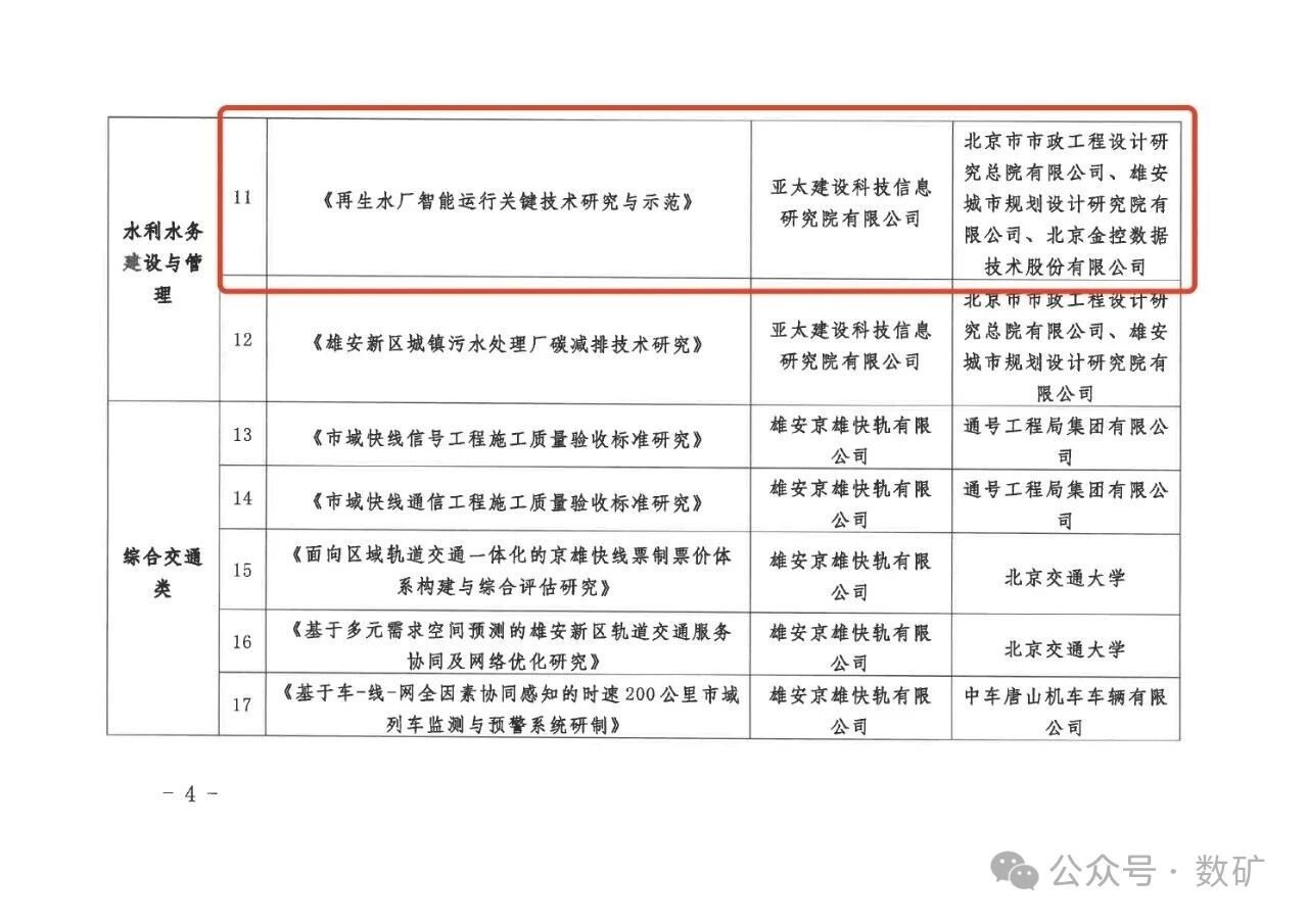 近日,河北雄安新區建設和交通管理局正式下達《2025年雄安新區建設科技計劃項目的通知》。金控數據作為核心合作單位,榮幸參與其中“水利水務建設與管理”領域的重點項目——《再生水廠智能運行關鍵技術研究與示范》。