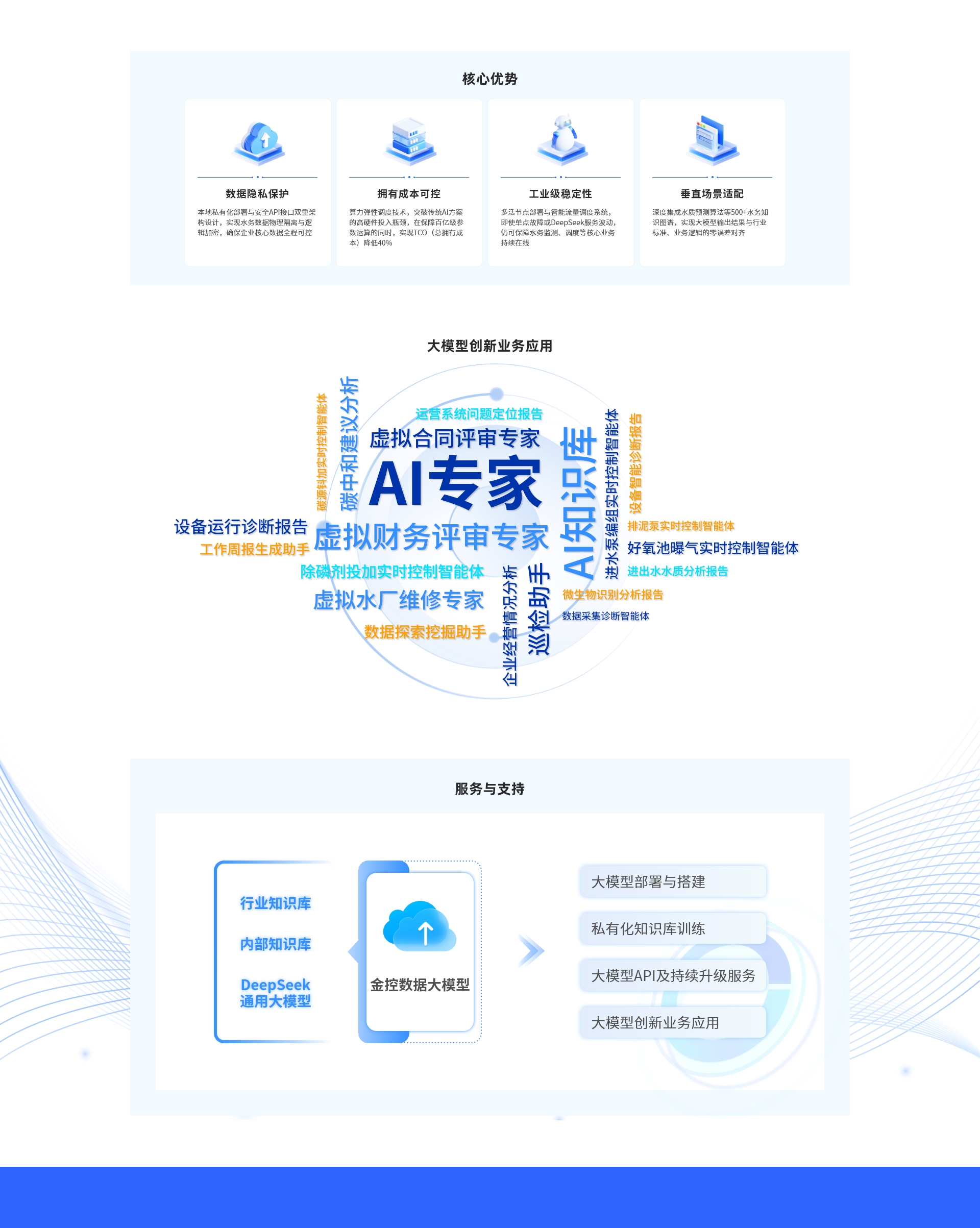 金控數據專注于智慧水務,提供從監測設備到軟件的全面解決方案,以"數礦"平臺為核心,實現水務智能化管理和運維服務,助力水務行業數字化轉型。